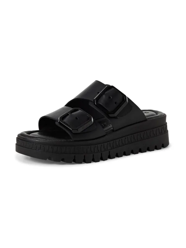 Design: Profielzolen, Elastische inserts, Gesp; Type sluiting: Slip; Materiaal: Leer; Motief: Effen; Plateau: Met plateau; Materiaal: Glad leer; Schoenneus: Open toe; Extra’s: Gladde stof, Anti-slip zool, Flexibele zool; Hakhoogte: Middelhoge hak (3-7 cm)