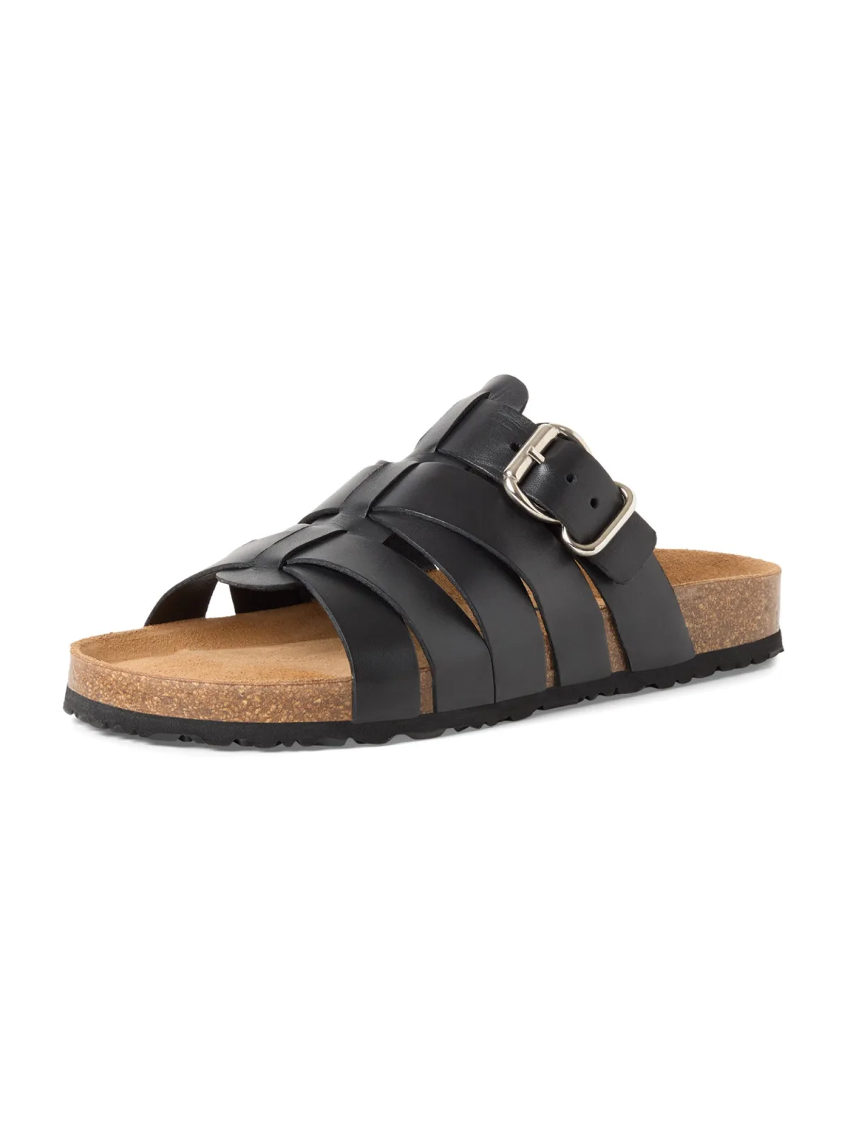 Design: Profielzolen, Elastische inserts; Type sluiting: Slip; Materiaal: Leer; Motief: Effen; Schoenneus: Open toe; Extra's: Gewatteerde rand, Flexibele zool; Hakhoogte: Platte hak (0-3 cm)