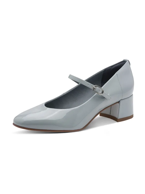 Design: Pumps met enkelbandje, Verstelbare riemen; Type sluiting: Riemsluiting; Type hak: Blokhak; Materiaal: Imitatieleder; Motief: Effen; Materiaal: Lak; Schoenneus: Ronde neus; Extra's: Glanzend, Op staal naden, Flexibele zool; Hakhoogte: Middelhoge hak (3-7 cm)