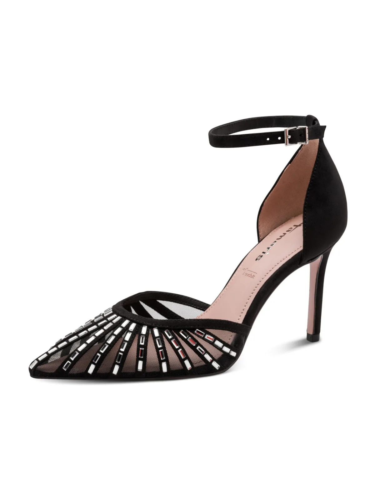 Design: Pumps met enkelbandje, Verstelbare taille; Type sluiting: Riemsluiting; Type hak: Stiletto; Materiaal: Imitatieleder; Materiaal: Imitatieleer; Schoenneus: Spitse neus; Extra's: Mesh, Applicaties, Vaste grip; Hakhoogte: Hoge hak (7-10 cm)