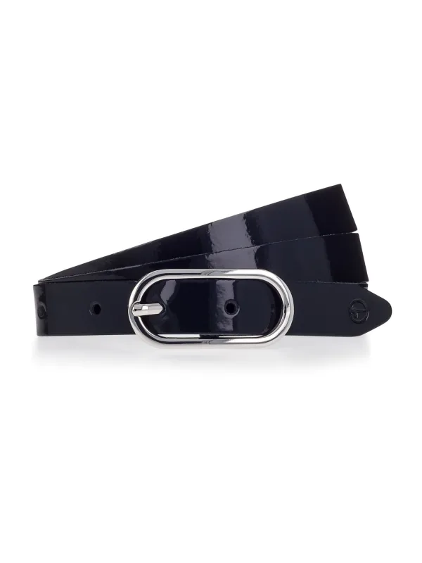 Design: Recht model; Type sluiting: Gesp; Materiaal: Leer; Motief: Effen; Materiaal: Lak; Type riem: Heupriem; Extra's: Glanzend, Label preegdruk, Gladde stof