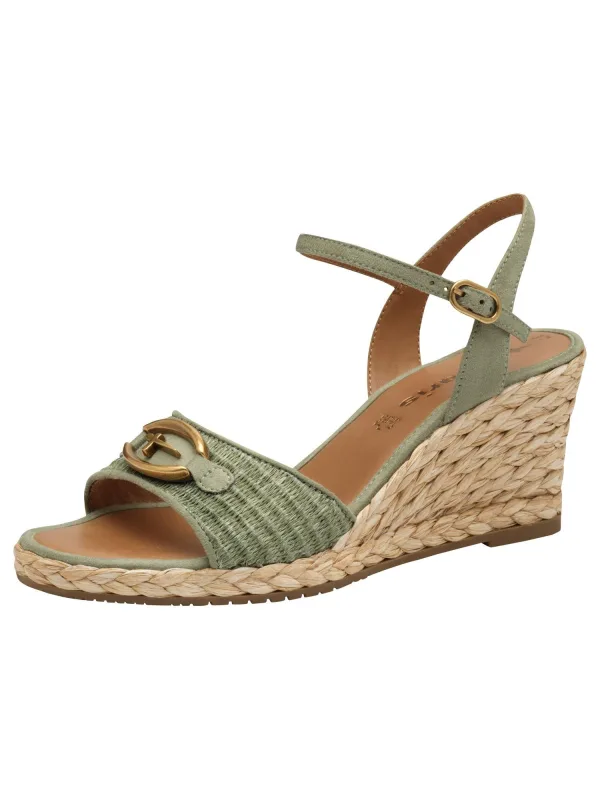 Design: Gevoerd, Profielzolen, Verstelbare riemen, Hak/zool met raffia-look, Materiaal mix; Type sluiting: Riemsluiting; Type hak: Sleehak; Motief: Effen; Materiaal: Stro materiaal; Schoenneus: Open toe; Extra’s: Label plaatje, Stevige stof; Hakhoogte: Middelhoge hak (3-7 cm)
