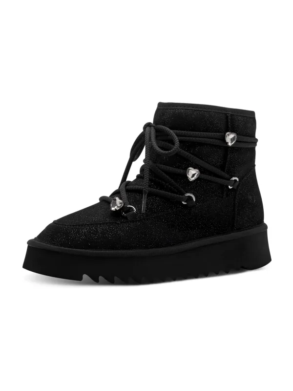 Design: Gevoerd, Vetering, Ritszakken aan de zijkant, Profielzolen; Type sluiting: Ritssluiting; Materiaal: Imitatieleder; Motief: Effen; Plateau: Met plateau; Materiaal: Imitatieleer; Schoenneus: Ronde neus; Extra's: Glitterend, Anti-slip zool; Voering: Warm gevoerd; Hakhoogte: Middelhoge hak (3-7 cm)