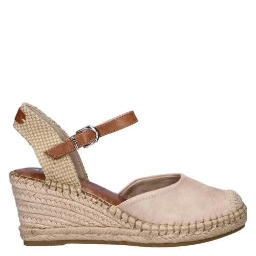 Ga voor een zomerse, elegante look met deze Tamaris dames sleehak sandalen in beige. De combinatie van zacht suède, een geweven hielstuk en de touwzool geeft de sandalen een typische espadrille-uitstraling, ideaal voor festivals, een dagje stad of een zomerse bruiloft. Het TOUCH-IT voetbed vormt zich naar jouw voet, zodat je de hele dag comfortabel loopt. De sleehak van 7,5 centimeter zorgt voor extra lengte, terwijl de plateauzool aan de voorzijde de hakhoogte minder steil laat aanvoelen.Zomerse sleehak met comfortdetails Buitenkant gemaakt van suède in een zachte beige kleur Karakteristieke touwzool voor een espadrille look met boho uitstraling TOUCH-IT voetbed dat zich aanpast aan de vorm van je voet Leren binnenzool voor een aangenaam voetklimaat op warme dagen ANTISlide technologie in de hak voor verbeterde grip Verstelbaar enkelbandje met gesp voor een goede pasvorm rond de enkel Sleehak van 7,5 centimeter met lichte plateauzool voor stabiel loopcomfort Zachte textiel voering aan de binnenkant voor een prettig gevoel op de huidVoor zomerse dagen en avondenOf je nu uren danst op een festival of langs de boulevard wandelt, deze sandalen geven je outfit een lichte, vrouwelijke uitstraling. De neutrale beige kleur laat zich makkelijk combineren met zomerjurken, jumpsuits of een luchtige jeans.Tamaris als schoenexpertTamaris is een internationaal bekend schoenenmerk dat zich richt op modieuze en comfortabele schoenen voor elke dag. Met aandacht voor pasvorm, slimme comforttechnologieën en actuele trends biedt Tamaris collecties die er verzorgd uitzien en prettig dragen.Met deze espadrille sleehakken van Tamaris voeg je een stijlvolle en comfortabele sandaal toe aan je zomergarderobe.