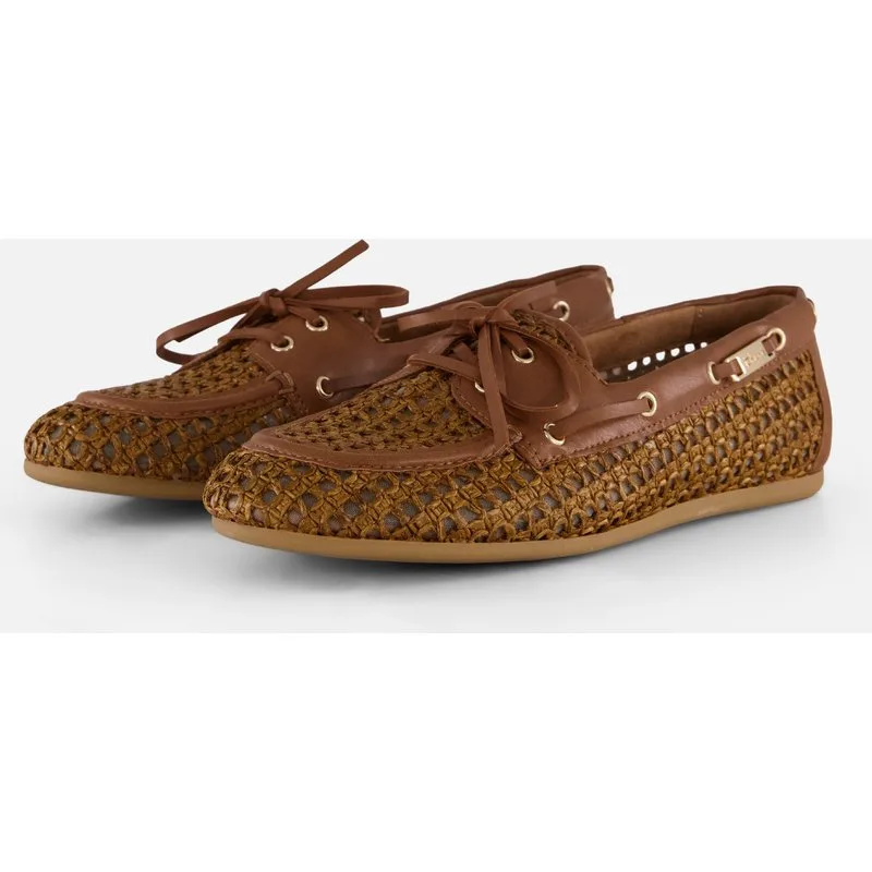 Deze Tamaris instapper voor dames in een warme cognackleur straalt zomerse elegantie uit en is perfect voor een stijlvolle, luchtige look. Het gevlochten bovenwerk in combinatie met de gladde leren details en het subtiele goudkleurige accent geeft deze instapschoen een verfijnde uitstraling, terwijl de soepele zool zorgt voor comfortabel draaggemak bij iedere stap.