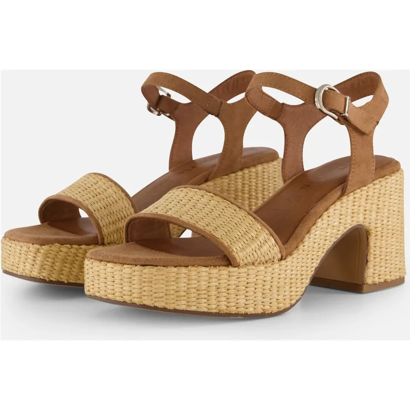 Tamaris Tamaris Sandalen met hak cognac Textiel