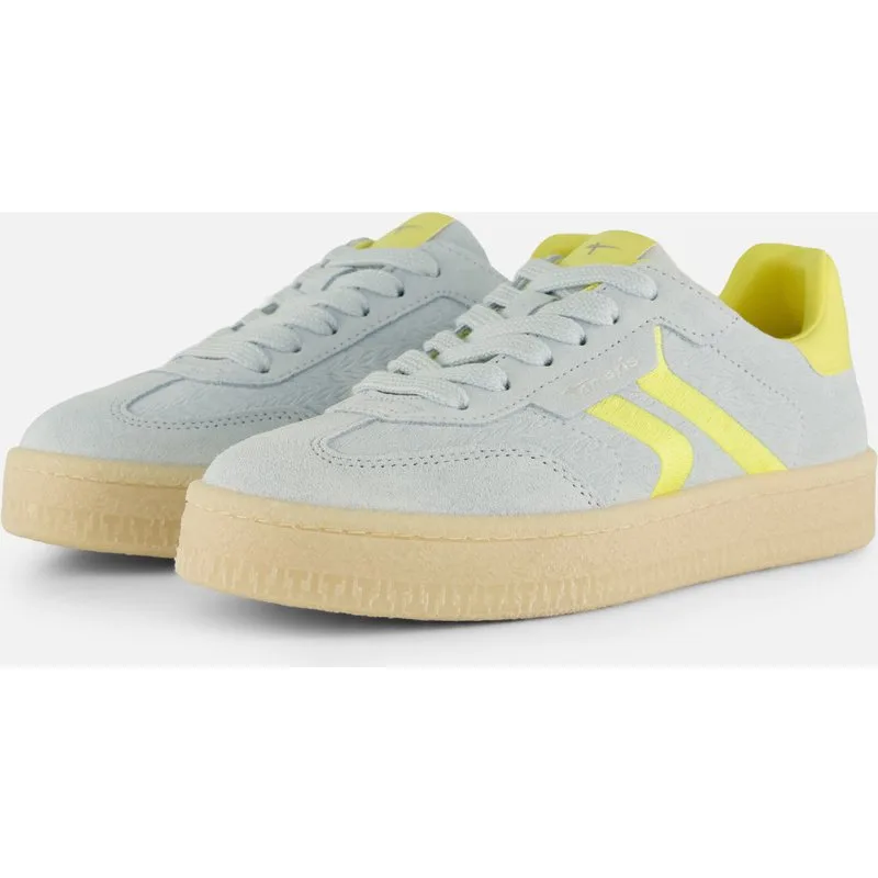 Tamaris dames sneakers van blauw leer met gele strepen