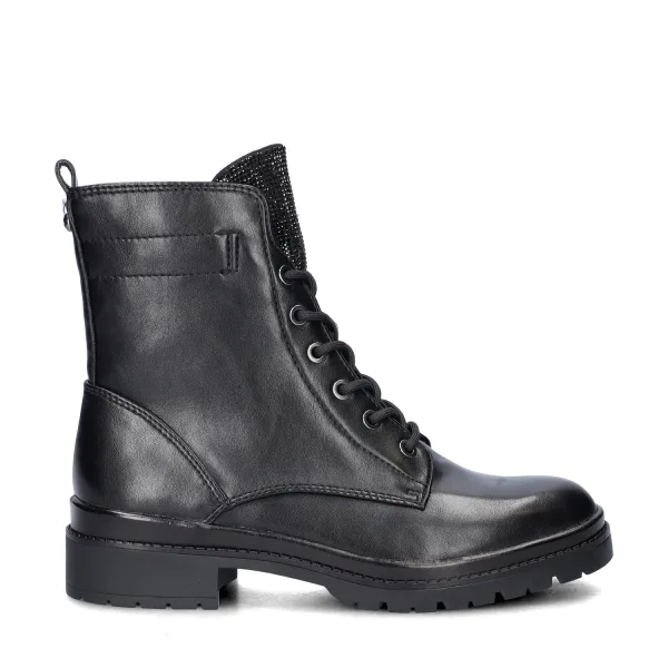 Nelson dames veterboot Een veterboot is een grote favoriet. Ze zijn super veelzijdig en kunnen met veel stijlen gematcht worden. Uitgevoerd in imitatieleer met strass-steentjes op de tong voor net dat beetje bling. Gevoerd met textiel wat voor een comfortabel draaggevoel zorgt en de voeten warmer in het najaar. Voorzien van een licht dempend voetbed met textielen bekleding. Afgewerkt met een rubberen loopzool met voldoende grip.