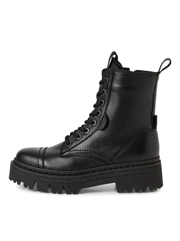 Design: Vetering met 8 gaten; Type sluiting: Snoersluiting; Type hak: Blokhak; Materiaal: Leer; Motief: Effen; Plateau: Met plateau; Materiaal: Glad leer; Schoenneus: Open toe; Extra's: Flexibele zool; Hakhoogte: Middelhoge hak (3-7 cm)