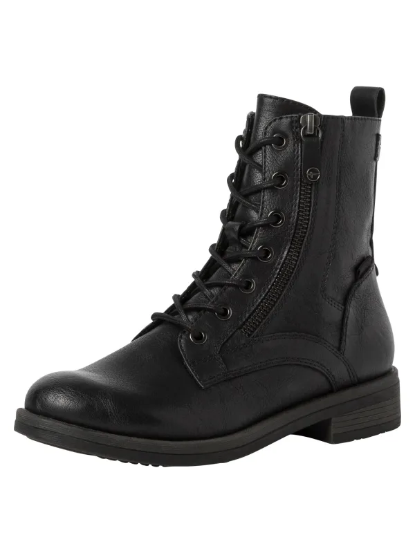 Design: Ritszakken aan de zijkant, Vetering met 7 gaten, Profielzolen, Versterkte hak, Hielband; Type sluiting: Snoersluiting; Type hak: Blokhak; Motief: Effen; Materiaal: Imitatieleer; Schoenneus: Ronde neus; Extra's: Op staal naden, Stevige stof, Flexibele zool, Metalen oogjes; Hakhoogte: Middelhoge hak (3-7 cm)