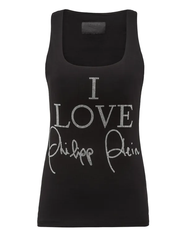 Tanktop van katoenen jersey. De iconische Plein-handtekening van strassteentjes en een speciaal opschrift sieren het kledingstuk. Een saffiaanleren patch met de PP Hexagon op het juk genaaid. Zomen gestikt met twee naalden.
