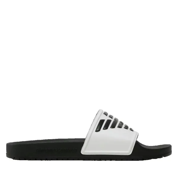Emporio Armani Slide Eagle herenclaquette, wit synthetisch. Authentieke Emporio Armani merkschoen - streetwear/sportswear design van Emporio Armani - Emporio Armani voor herenmode, perfect voor dagelijks gebruik - de witte Emporio Armani claquette is een perfecte aanvulling op je garderobe - comfortabele synthetische materialen - klassieke gesp - Slide Eagle - synthetisch.