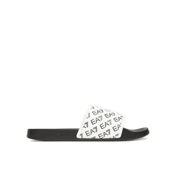 EA7 Urban herenschoen in wit, gemaakt van synthetische vezels. Authentieke EA7-schoen - streetwear/sportswear design van EA7 - EA7 voor modebewuste mannen, perfect voor dagelijks gebruik - De witte EA7 claquette past perfect bij de rest van je garderobe - Comfortabel materiaal van synthetische vezels - Klassieke band - Urban - Synthetische vezels