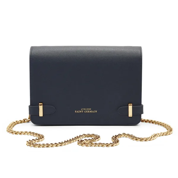 Tasje ELYSEE Draagbaar over de schouder - 2 Compartimenten, waaronder 1 met rits - Binnenzak met rits - Suède binnenvoering - Comfortabele zijkanten - Gouden schouderband - Gelogodeerde ATELIERS SAINT GERMAIN - Klep met magnetische sluiting - Saffiano leerafwerking