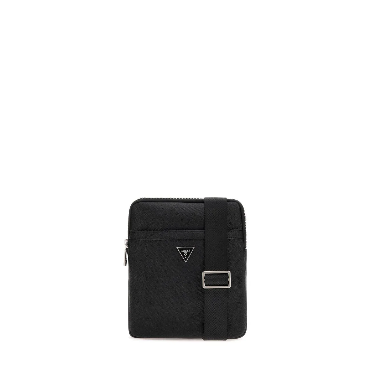 GUESS Schoudertas 'SAFFIANO ECO CROSSBODY FLAT' zwart / zilver