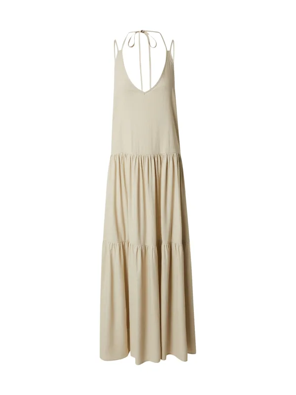 Design: Vetering; Type sluiting: Snoersluiting; Materiaal: Linnen, Viscose; Halstype: V-hals; Motief: Effen; Soort bandjes: Haltermodel; Details: Backless; Lengte: Lang/maxi; Snit: Uitlopend; Pasvorm: Normale pasvorm; Armlengte: Mouwloos
