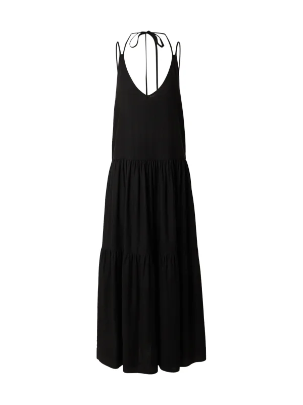 Design: Vetering, Uitgesneden rug; Type sluiting: Snoersluiting; Materiaal: Linnen, Viscose; Halstype: V-hals; Motief: Effen; Soort bandjes: Haltermodel; Details: Backless; Lengte: Lang/maxi; Snit: Uitlopend; Pasvorm: Normale pasvorm; Armlengte: Mouwloos