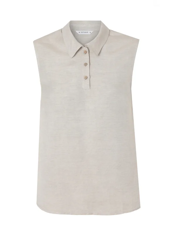 Blouse type: Blouseshirt; Type sluiting: Knoopsluiting; Materiaal: Linnen; Motief: Effen; Pasvorm: Normale pasvorm; Armlengte: Mouwloos; Lengte: Normale lengte