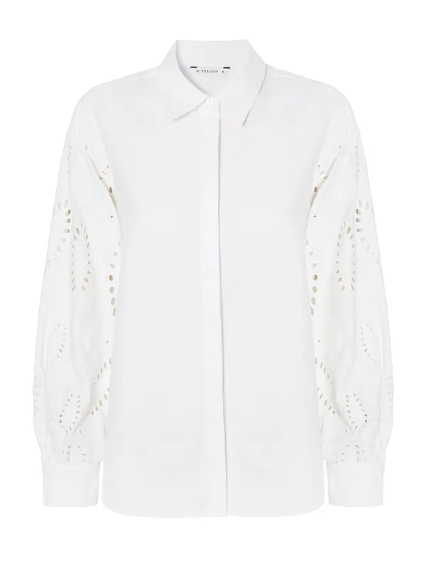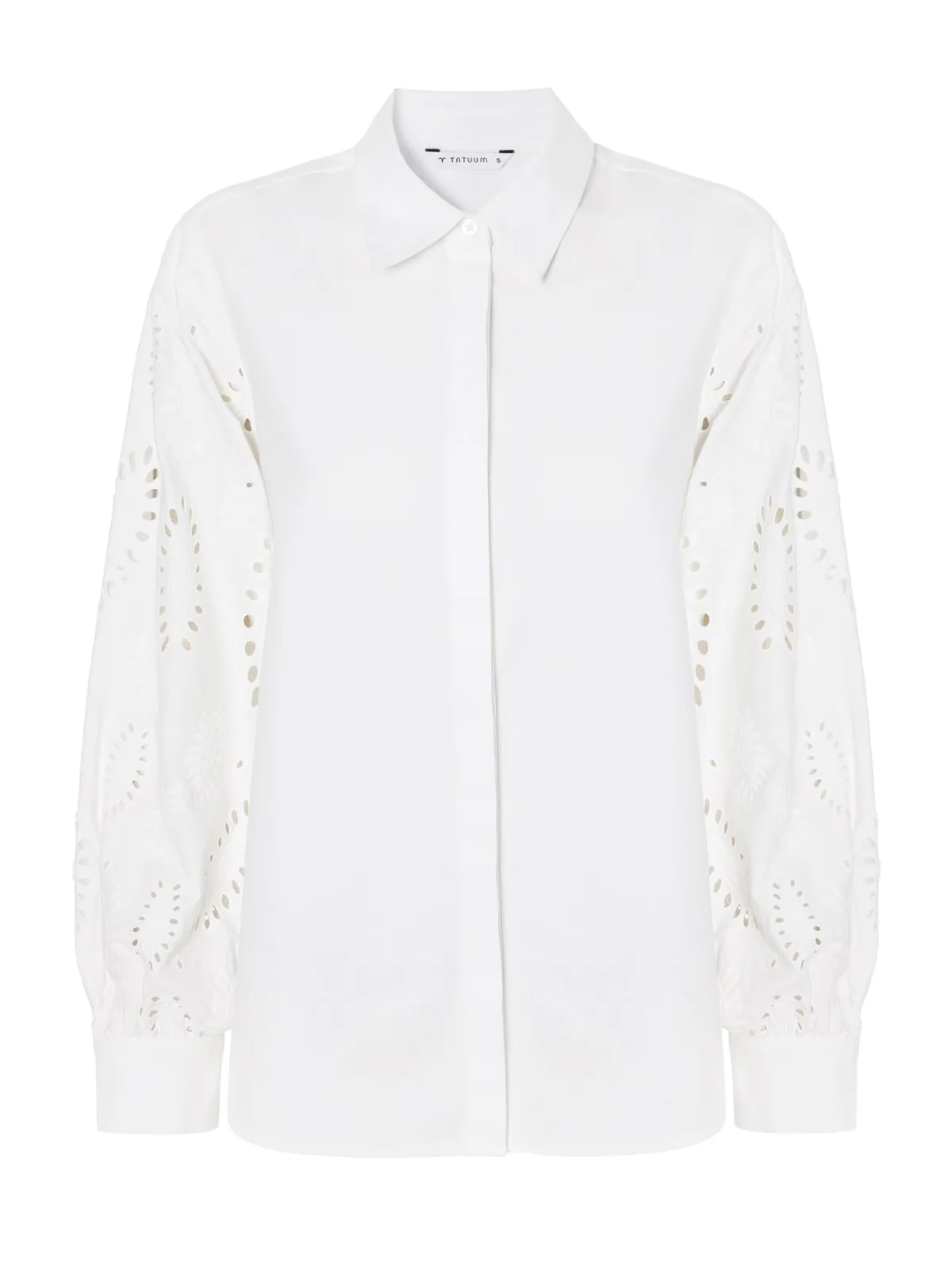 Blouse type: Klassieke blouse; Design: Verborgen knop placket; Type sluiting: Knoopsluiting; Materiaal: Katoen; Motief: Effen; Kraag: Kentkraag; Details: Borduursels, Mesh; Extra's: Voelt zacht aan; Pasvorm: Normale pasvorm; Armlengte: Lange mouw; Lengte: Normale lengte