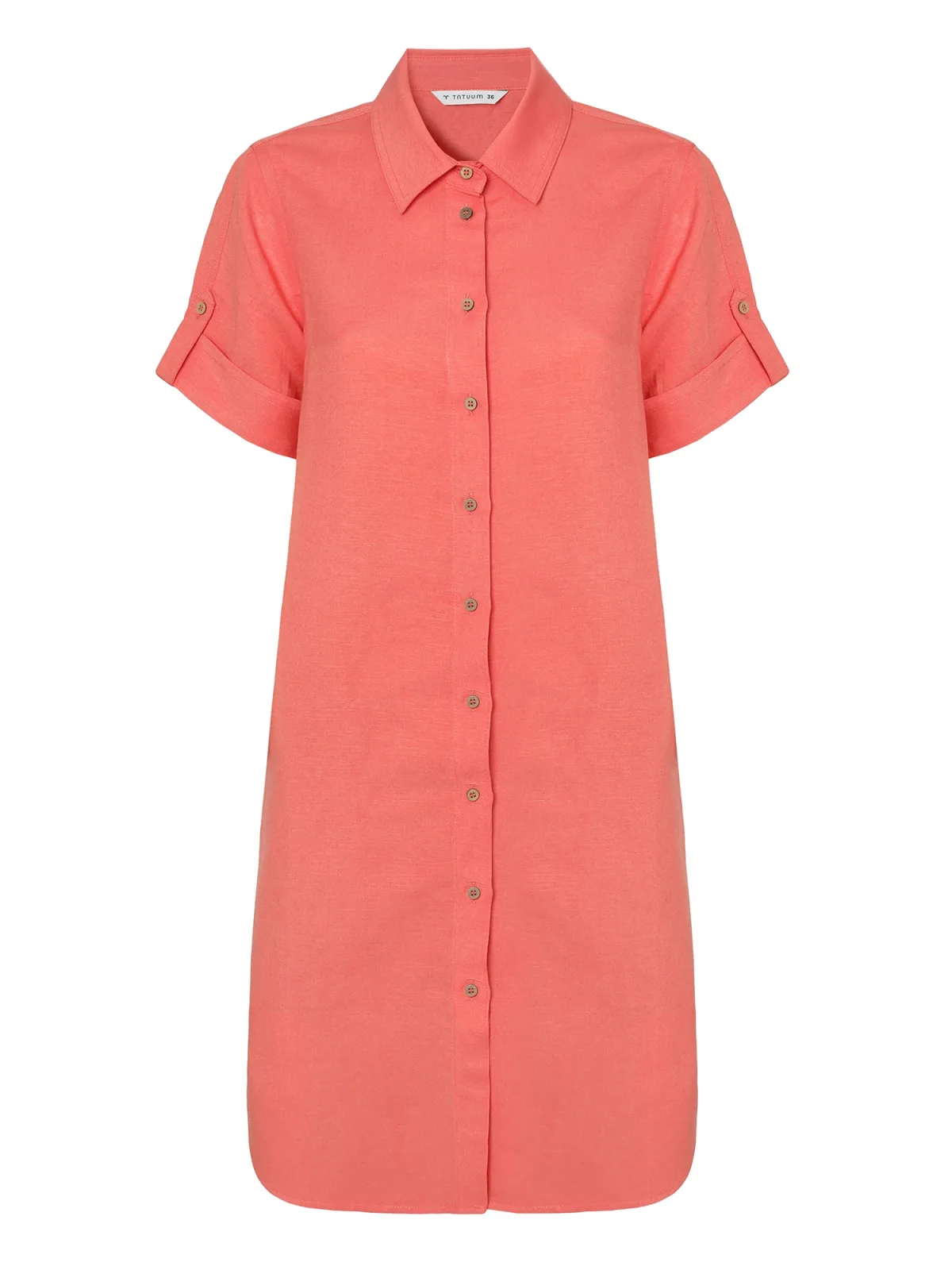 Design: Gevoerde zoom/rand; Type sluiting: Knoopsluiting; Materiaal: Linnen; Halstype: Polokraag; Motief: Effen; Extra's: Op staal naden; Lengte: Knielengte; Pasvorm: Normale pasvorm; Armlengte: Kwartmouw