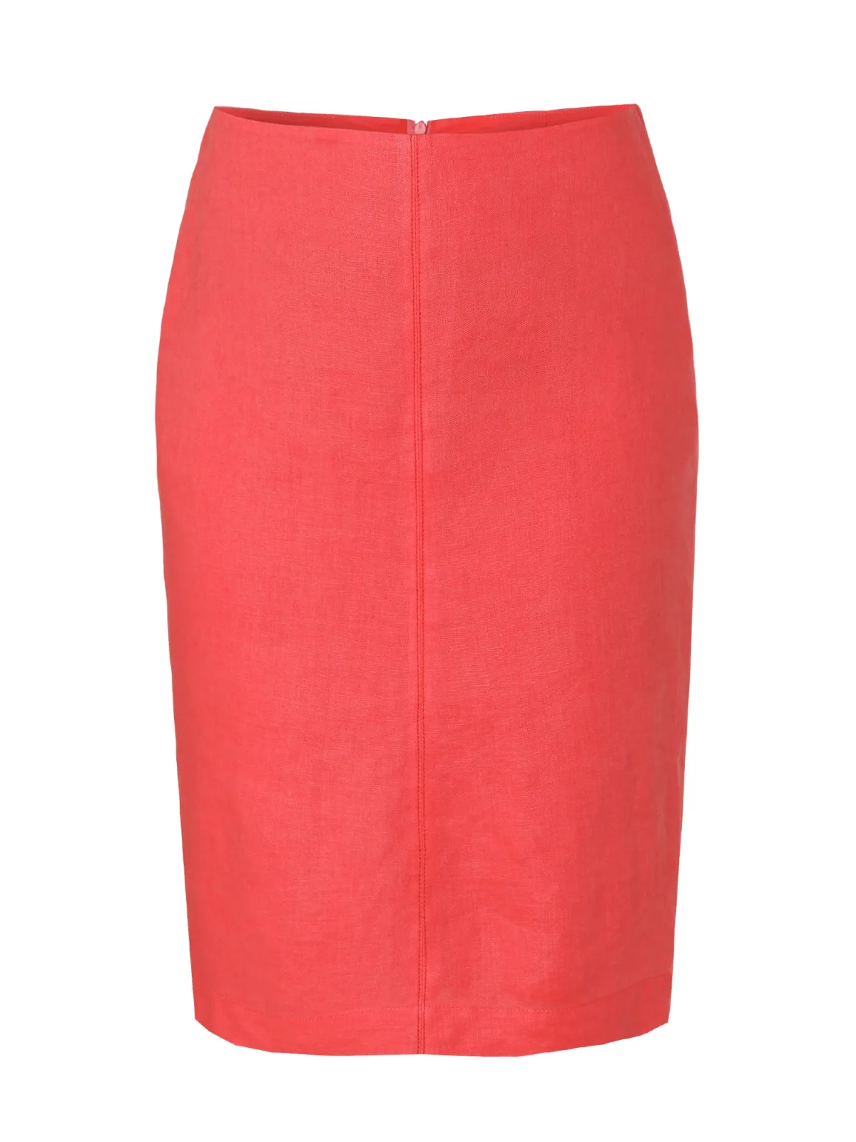 Design: Gevoerde zoom/rand, Rechte zoom, Rug rits, Rug inkeep; Type sluiting: Ritssluiting; Materiaal: Linnen; Motief: Effen; Rokvorm: Kokerrok; Extra's: Op staal naden; Lengte: Knielengte; Pasvorm: Normale pasvorm