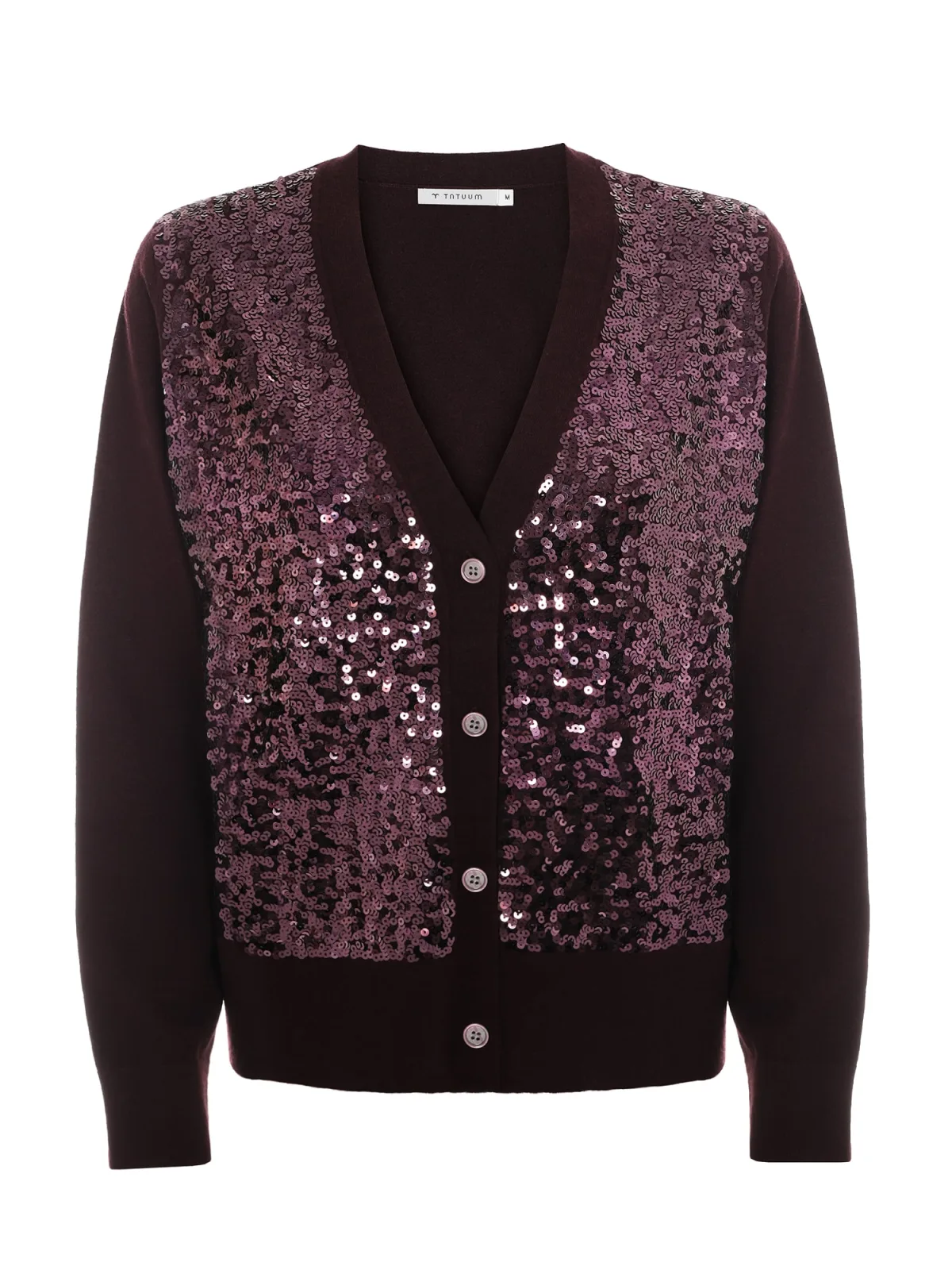 Design: Knop placket; Type sluiting: Knoopsluiting; Materiaal: Sweatstof; Halstype: V-hals; Details: Pailletten; Extra's: Glitterend; Pasvorm: Normale pasvorm; Armlengte: Lange mouw; Lengte: Normale lengte