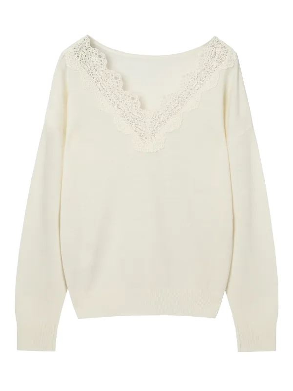 Materiaal: Wol; Halstype: V-hals; Motief: Effen; Details: Kant; Pasvorm: Normale pasvorm; Armlengte: Lange mouw; Lengte: Normale lengte