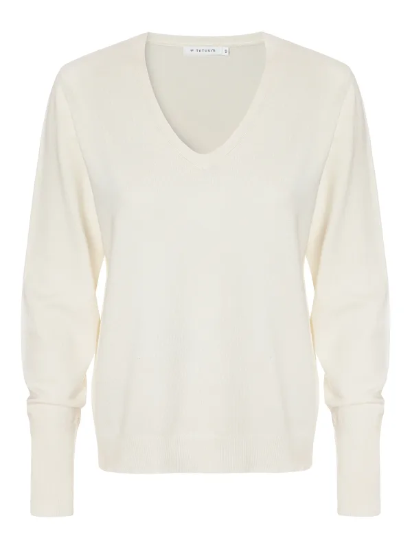 Gemaakt van zachte garens met een hoog gehalte aan viscose LENZING™ ECOVERO™, is hij prettig om te dragen en ademend.De V-hals en de geribbelde afwerking geven het een tijdloze uitstraling.Het is de ideale basis voor verschillende stijlen - zowel voor op kantoor als voor een casual outfit.