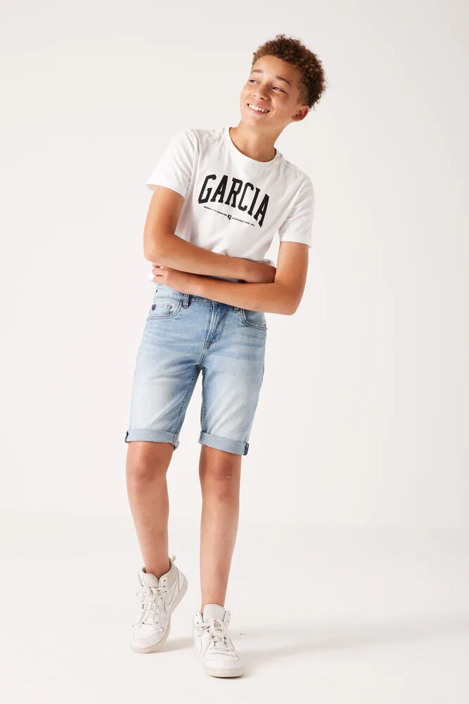 De Tavio 340 is een denim short met een slim fit en opgerolde pijpen tot boven de knie. De short heeft steekzakken, achterzakken en sluit met een rits- en knoopsluiting. De tailleband kan eenvoudig versteld worden door middel van de elastische banden aan de binnenzijde. Hergebruik van materialen draagt bij aan een circulaire economie. Daarnaast is bij het creëren van dit GARCIA kledingstuk gebruik gemaakt van een duurzamere wastechniek.