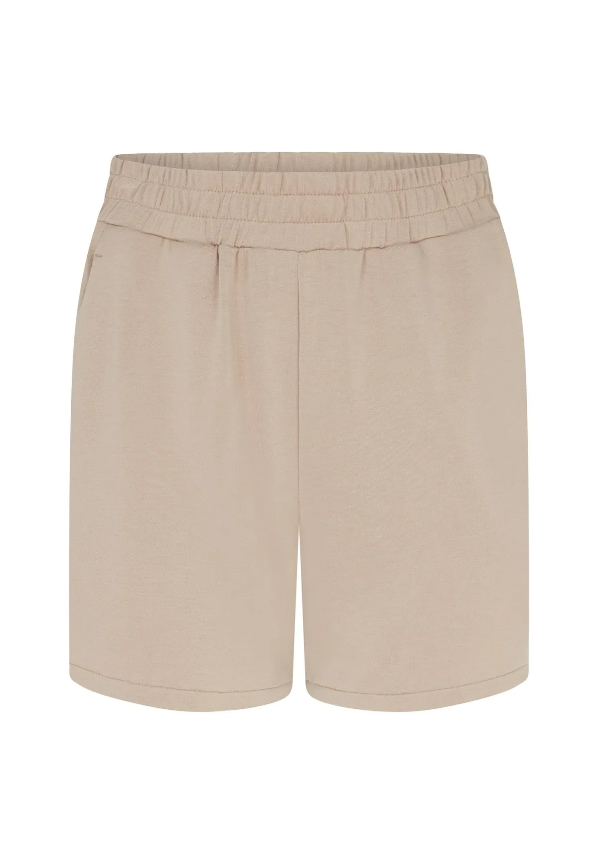 Design: Gevoerde zoom/rand; Type sluiting: Elastische band; Materiaal: Sweatstof; Motief: Effen; Details: Gedrapeerd; Extra's: Voelt zacht aan; Lengte: Kort/mini; Pasvorm: Regular; Taillehoogte: High waist