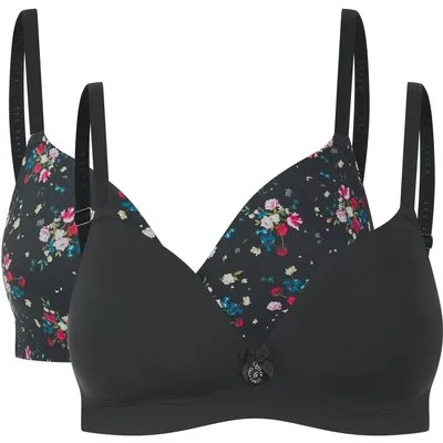 Ted Baker Fabel 2 Pk Ditsy Rose Print Wireless Shapiing Bra Jet Black
