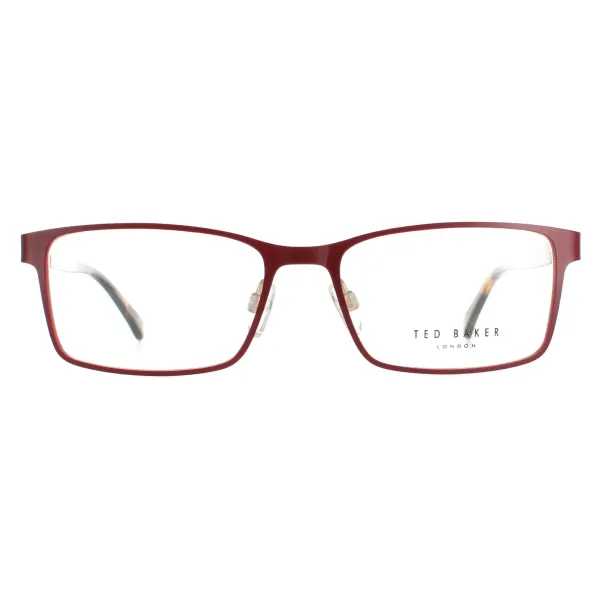 Ted Baker Rectangular Mens Burgundy TB4278 Hadley Glasses feature a thin metal frame with nice simple styling and the classic rectangular frame shape suitable fit for most face shapes. Adjustable nose pads allow for a personalised fit.