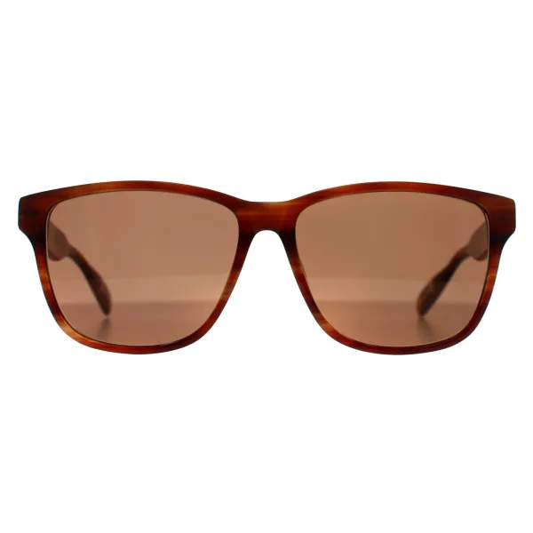 Ted Baker Rectangle Heren Bruin Hoorn TB8232 Zonnebril is een stijlvolle vierkante stijl gemaakt van lichtgewicht acetaat. De neuskussentjes uit één stuk bieden de hele dag comfort. Het Ted Baker logo is verwerkt in de slanke poten voor authenticiteit.