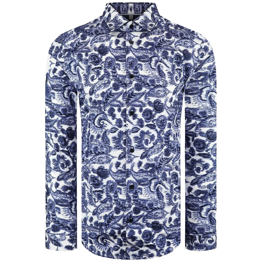 Ted Baker Uldale Heren Wit/Blauw Peterselie Overhemd Prijzen