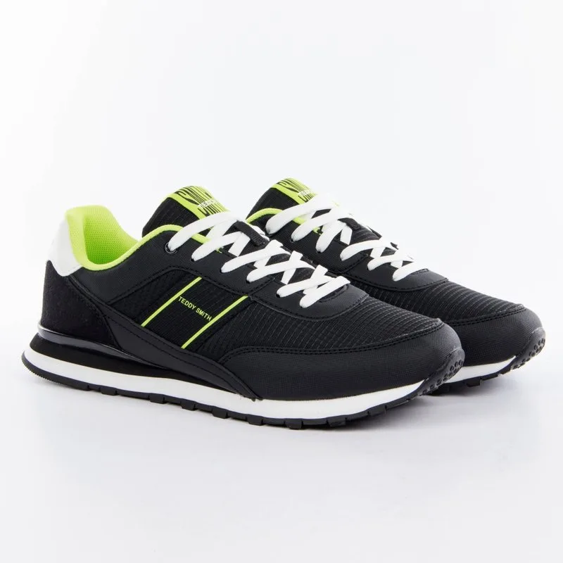 Teddy Smith Essential herensneakers, zwart synthetisch. Authentieke Teddy Smith merkschoen - streetwear/sportwear design van Teddy Smith - Teddy Smith voor heren, perfect voor dagelijks gebruik - de zwarte Teddy Smith sneakers passen perfect bij de rest van je garderobe - comfortabele synthetische materialen - klassieke veters - essential - synthetisch