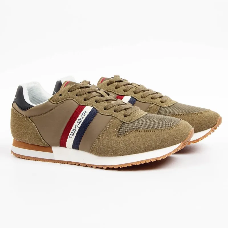 Teddy Smith Tricolore herensneakers, kaki synthetisch. Authentieke Teddy Smith merkschoen - streetwear/sportswear design van Teddy Smith - Teddy Smith voor heren, perfect voor dagelijks gebruik - de kaki Teddy Smith sneakers passen perfect bij de rest van je garderobe - comfortabele synthetische materialen - klassieke veters - tricolor - synthetisch.