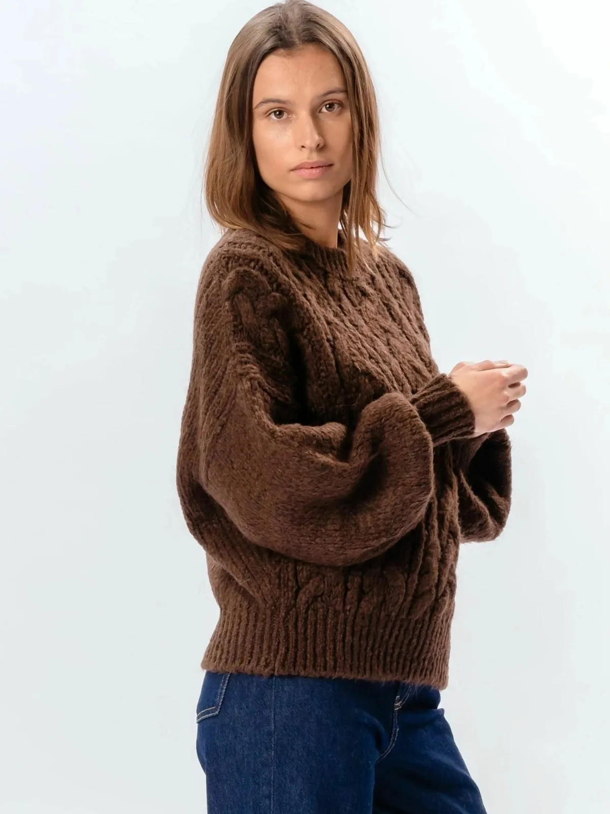 TEESHOPPEN Trui ‘ Emma Cable ‘ chocoladebruin