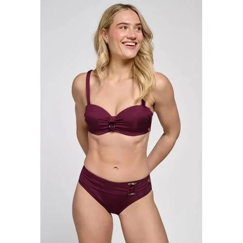 Dit effen donkerrode bikinibroekje van ten Cate Beach is een praktische basis voor je badkledingcollectie. De normale taillehoogte en volledig bedekkende achterkant zorgen voor een gelijkmatige dekking, terwijl de gladde, zachte stof met stretch aansluit op je lijf. De donkerrode kleur combineert eenvoudig met verschillende bikinitops, zodat je gemakkelijk verschillende sets samenstelt.Belangrijke kenmerken van dit bikinibroekje Effen donkerrode kleur die eenvoudig te combineren is met diverse tops Normale taillehoogte voor een natuurlijk en comfortabel gevoel Volledig bedekkende achterkant voor een gerust gevoel bij elke beweging Soepel materiaal met elastaan dat mooi om je lichaam valt Niet omkeerbaar, de binnenkant is neutraal afgewerkt Handwasadvies om de kleur en pasvorm goed te houden Niet strijken en niet in de droogtrommel drogen Bij het passen wordt geadviseerd om altijd ondergoed te dragenComfortabel aan het strand of bij het zwembadOf je nu een dag aan zee plant of ontspannen bij het zwembad ligt, dit bikinibroekje biedt bewegingsvrijheid en blijft goed op zijn plek. Combineer het met een bijpassende of contrasterende bikinitop in jouw stijl en je hebt een set die geschikt is voor langdurig dragen.ten Cate Beach met focus op draagcomfortten Cate Beach richt zich op badkleding met aandacht voor draagcomfort, pasvorm en betrouwbaarheid. De ontwerpen zijn functioneel en doordacht, zodat je kunt rekenen op bikini-items die goed aansluiten, prettig aanvoelen en lang mooi blijven. Met dit bikinibroekje haal je een praktische basis in huis voor vele zonnige dagen.Een rustige, effen basis waarmee je eenvoudig je favoriete bikini look samenstelt.
