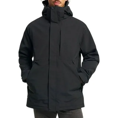 Specificaties: * Pasvorm: normaal; hoge kraag * Temperatuurregeling: ademend vermogen van 5.000g/m²/24u; zachte mesh voering * Waterdichtheid: MPC Plus-technologie, waterdicht tot een waterkolom van 5.000; getapete naden * Zakken: twee zijzakken; borstzak * Capuchon: vaste capuchon * Manchetten: met klittenband verstelbare manchetten * Rits: volledige ritssluiting met een overslag * Kleur: zwart * Materiaal: 100% polyester