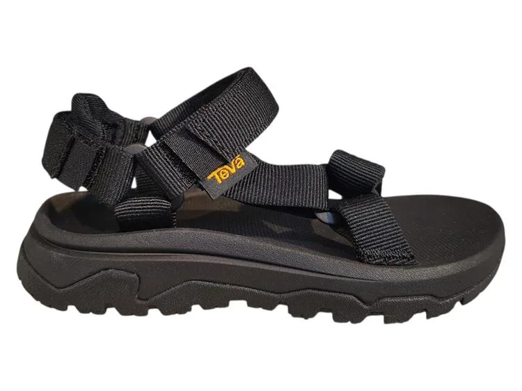 Soepele en waterbestendige sandaal model Hurricane XLT JR van het merk Teva met een 3 voudige klittenband sluiting in de kleur effen zwart . Kleurcode BLK black. De pasvorm is normaal maar valt één maat groter uit. Dus bestel een maat kleiner.
