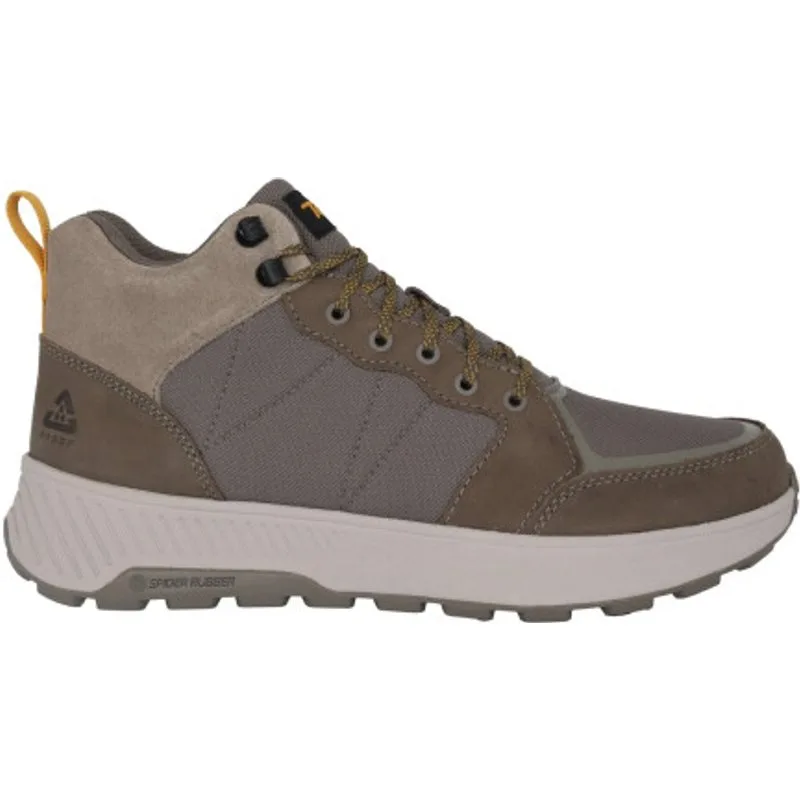Er zijn altijd nieuwe paden om te verkennen, en de Ellwood Mid is uw perfecte gids. Deze veelzijdige veterschoen voor wandelen gaat snel van stadsstraten naar bergpaden. Het ontwerp combineert een slijtvaste tricot en suède bovenkant met een waterdichte voering en een robuuste Spider Rubber-zool. Het resultaat: de ultieme metgezel voor elk avontuur.
