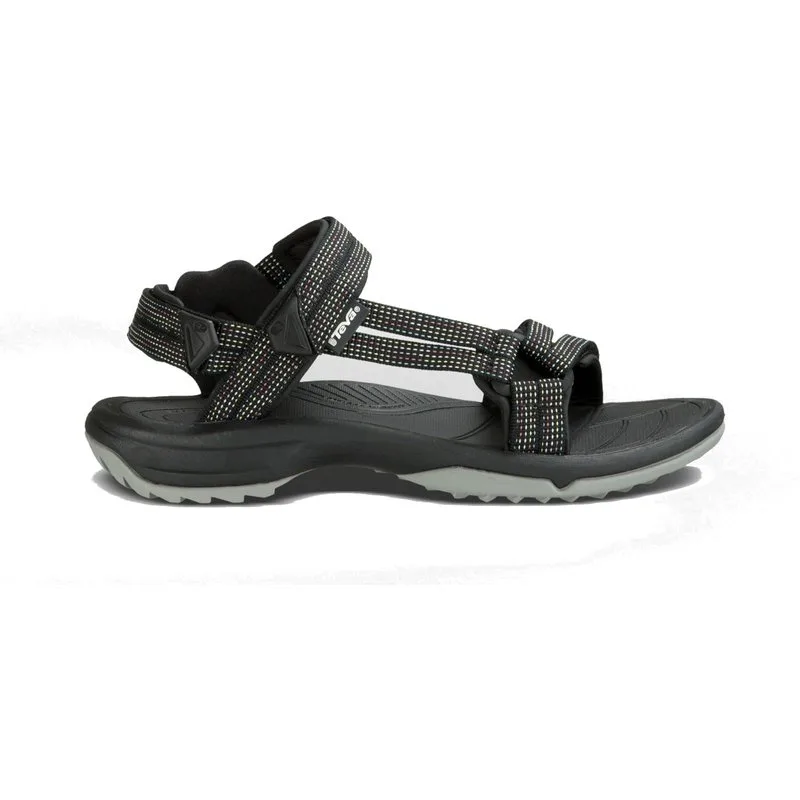 De Teva W TERRA-FI LITE CITY LIGHTS BLACK PASTEL Sandalen voor dames hebben een polyester bovenwerk met een zachte voering voor extra draagcomfort. De sneldrogende sandalen zijn voorzien van klittenbandsluitingen voor een persoonlijke pasvorm. De nylon tussenzool biedt extra stabiliteit en ondersteuning tijdens outdoor wandelingen. De Spider Original rubberen buitenzool met antislip zorgt voor een stevige grip en de ShocPad in de hak voor een comfortabele schokdemping.