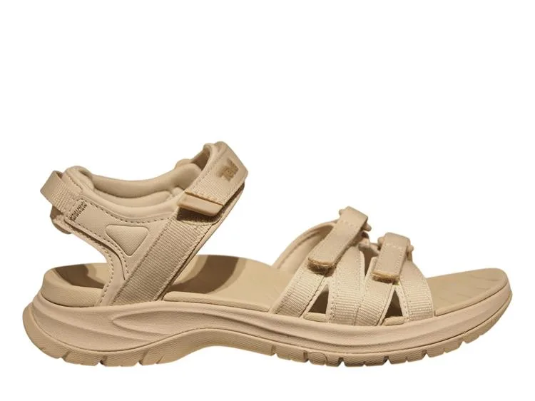 Ecru kleurige dames sandalen in model Tirra van Teva. Ontworpen om de look en de bekende voordelen van de Tirra, zoals voetholteondersteuning, stevigheid en veelzijdigheid, te behouden, terwijl de sandalen tegelijkertijd verbeterd comfort en grip onder de voet biedem. Deze stijl beschikt over een vernieuwd profiel met groeven op de buitenzool voor extra grip. Daarnaast is er extra foam toegevoegd in de middenzool voor nog meer comfort onder de voet.