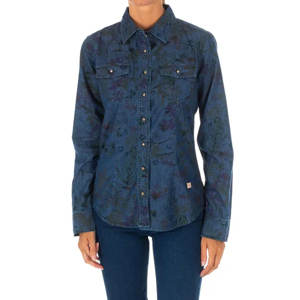 Texaans overhemd met lange mouwen en reverskraag 10DCL0058 vrouw