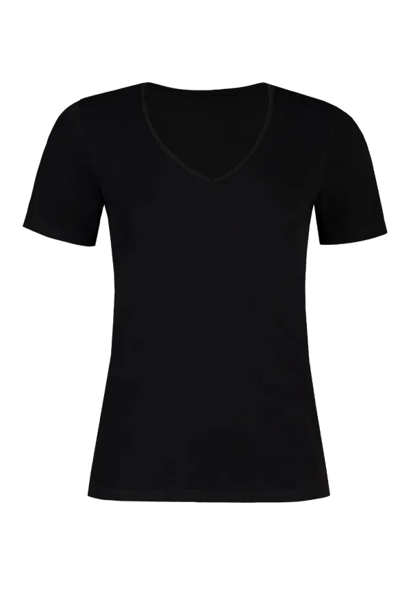 Design: Gevoerde zoom/rand, Rechte zoom; Materiaal: Jersey; Halstype: V-hals; Motief: Effen; Extra's: Op staal naden, Voelt zacht aan; Pasvorm: Aansluitende pasvorm; Armlengte: Kwartmouw; Lengte: Normale lengte
