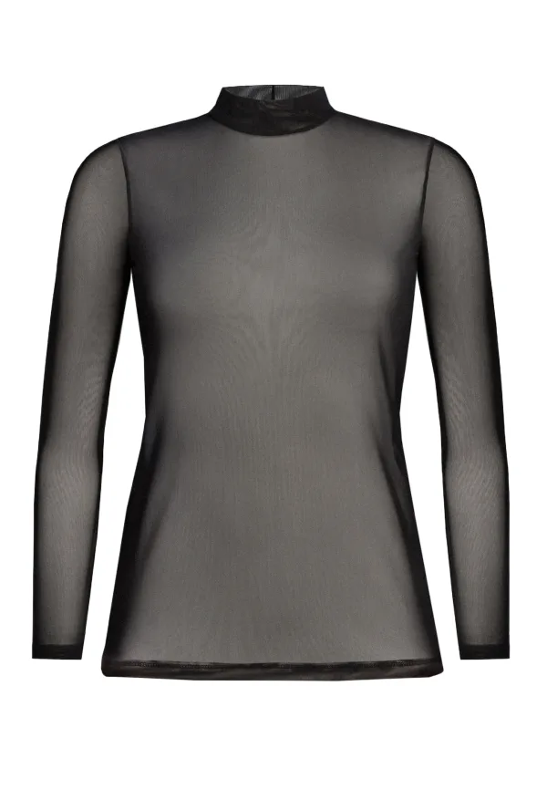 Blouse type: Blouseshirt; Design: Gevoerde zoom/rand; Halstype: Opstaande kraag; Motief: Effen; Kraag: Opstaande kraag; Extra's: Transparant; Pasvorm: Aansluitende pasvorm; Armlengte: Lange mouw; Lengte: Normale lengte