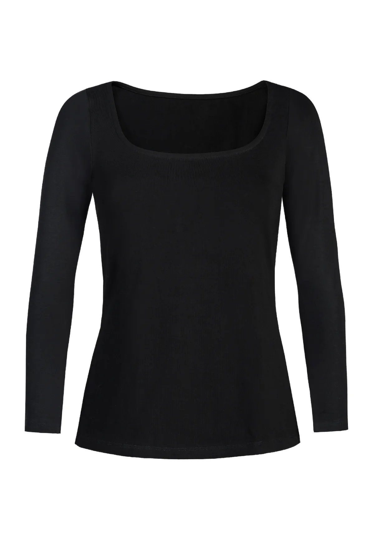 Design: Gevoerde zoom/rand, Rechte zoom; Materiaal: Jersey; Halstype: Carréhals; Motief: Effen; Extra's: Op staal naden, Voelt zacht aan; Pasvorm: Slanke pasvorm; Armlengte: Lange mouw; Lengte: Normale lengte