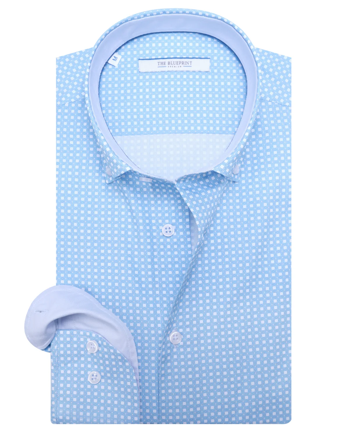 The BLUEPRINT Premium Heren BLUEPRINT Premium Casual Overhemd Lichtblauw Dessin