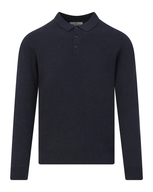 The BLUEPRINT Premium | Heren | Structured Polo Long Sleeve Donkerblauw Uni Prijzen