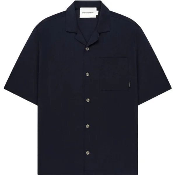 The GoodPeople Overhemd korte mouw 26010202 in de kleur Donker blauw